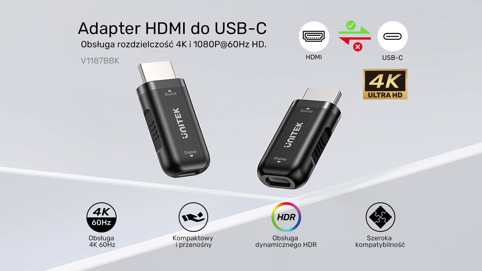 - Szukasz prostego sposobu, by połączyć laptop z wyjściem HDMI z nowoczesnym monitorem z USB-C? Unitek V1187BBK01 to kompaktowy i niezawodny adapter, który błyskawicznie k
